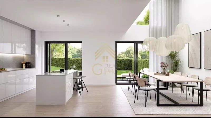 Inside, enjoy a state-of-the-art kitchen equipped with high-end appliances and ample dining space, perfect for family gatherings or entertaining guests. The house is fitted with triple glazing and double flow ventilation, ensuring a comfortable and energy-efficient environment all year round. High-speed optical fiber connectivity and a videophone system add to the modern conveniences.